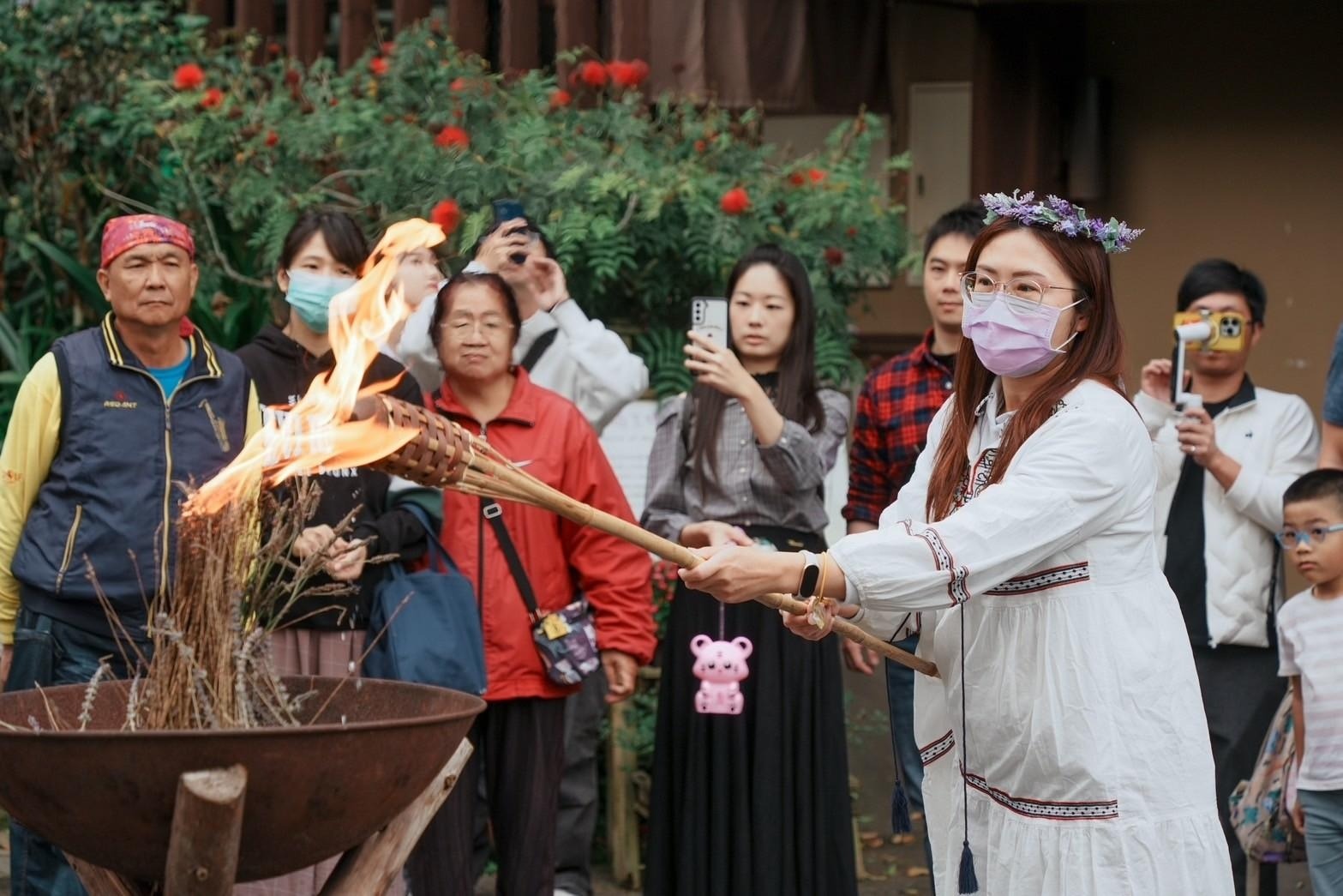 在森林中,傳遞火把、點燃薰香,